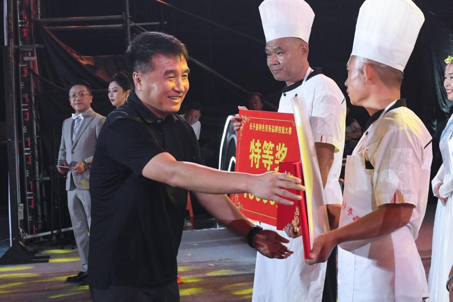 晚会上,为获得技能大赛特等奖、一、二、三等奖的选手颁发了荣誉证书,分别奖励10000元、5000元、3000元、1000元;为将赴海外理发的六名优秀长子理发师颁发聘任证书;为获得八音会大赛和威风锣鼓大赛金、银奖的乡镇颁发奖牌,分别奖励10000元、5000元;为获得长子“村晚”大比拼最佳乡音奖、优秀表演奖的获奖单位颁发奖牌,分别奖励30000元、20000元。此外,活动还评选出技能大赛优秀奖选手,技能大赛团体组织一、二、三等奖和优秀组织奖。