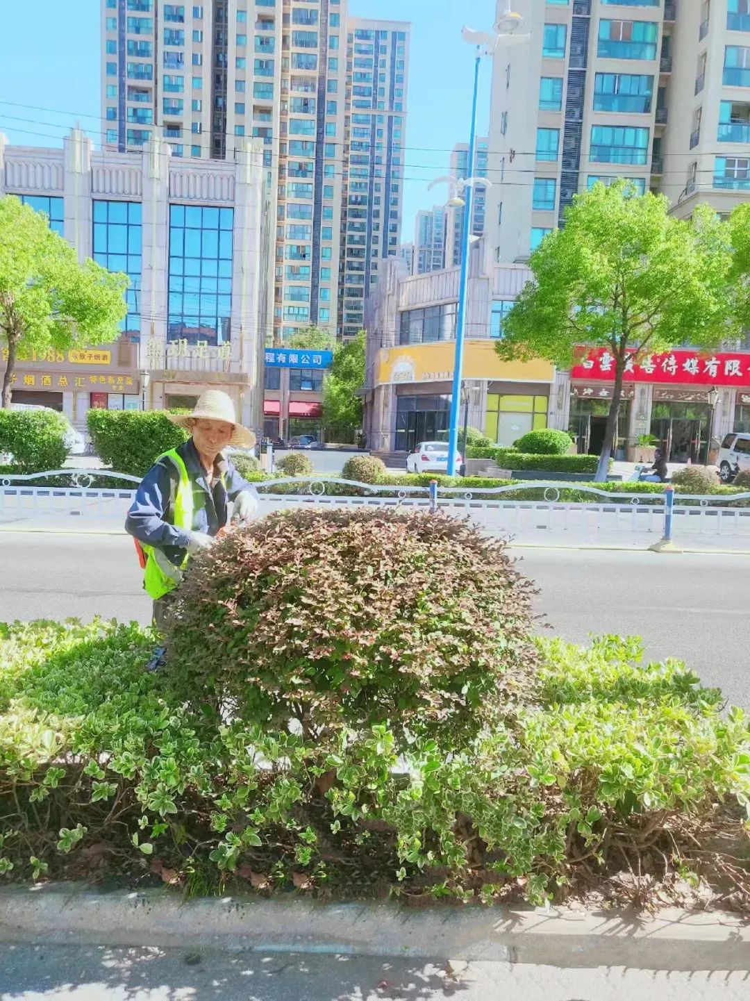 盛夏苗木生长旺盛,为确保绿化树木的正常生长和城市绿化景观效果,力求让每一棵树、每一片绿篱都能呈现最佳状态,园林工人们在强化日常养护的基础上,加大了修剪整形、除草除杂、防治病虫害的力度。因此天气越是酷热,园林工人越是忙碌。“能为城市建设留下一抹绿色,感觉很值得。”熊银抹了一把脸上的汗珠,又接着开始修剪。