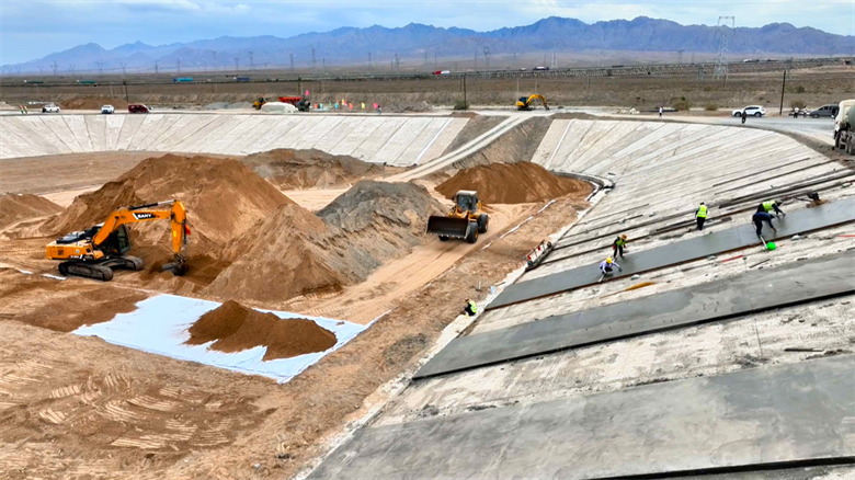 走进总投资1090.98万元的骆驼城地下水超采区综合治理调蓄水池项目建设施工现场,挖掘机“铁臂”挥舞、运土车往来穿梭、施工员有序作业,一派全力以赴抢工期、抓进度的忙碌景象。项目建成后,将极大地改善新民村、建康村、永胜村的供水条件,有效提升灌区调蓄能力,压减地下水量110万立方米,促进地下水超采综合治理。“现在已完成的是坝体夯填、压实,目前正在进行的是坝面的混凝土浇筑和库底土工膜焊接、回填,现在已完成总工程的80%,预计在九月份完工。”骆驼城水管所干王文春说。