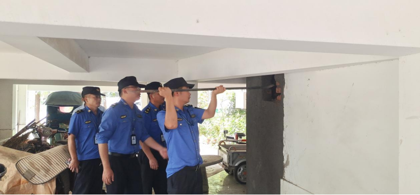 辖区中队迅速组织力量,出动执法人员10余名,对清怡水岸小区一楼公共车库违建开展专项拆除整治行动。拆除过程中,执法人员分工协作,秩序组有效管控现场,保障作业区安全,避免对周边居民生活造成不必要的干扰;拆除组携带大锤、撬棍等工具,采取锤敲、棍别、人推等方式,对正在封闭建设的违建车库墙体进行了强制拆除,经过两个小时的紧张施工,违建车库被彻底拆除,一楼公共空间恢复了正常秩序,业主生活空间安全得到了保证,以实际行动打消违建者私搭乱建的侥幸心理。