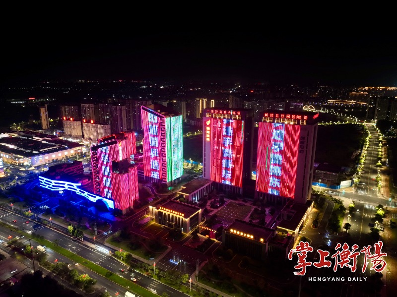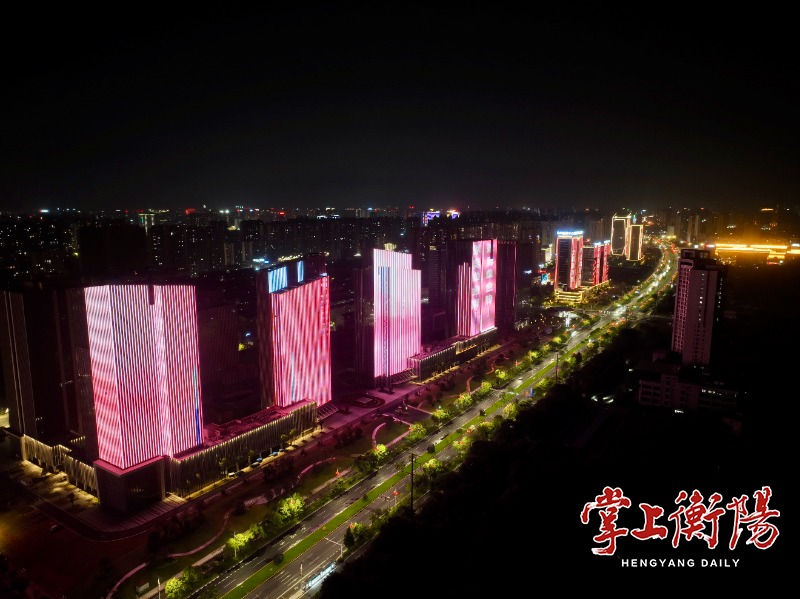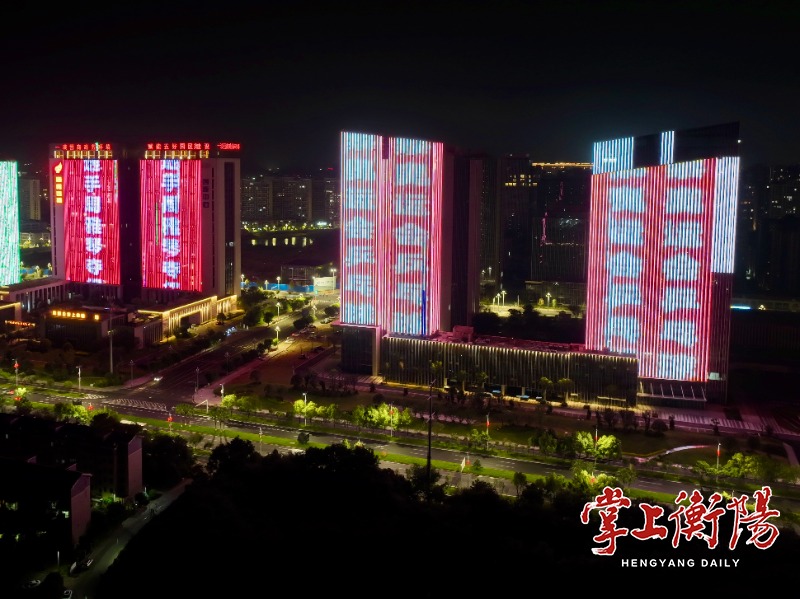 衡州大道数字经济走廊开启灯光秀为衡阳籍奥运选手祝贺