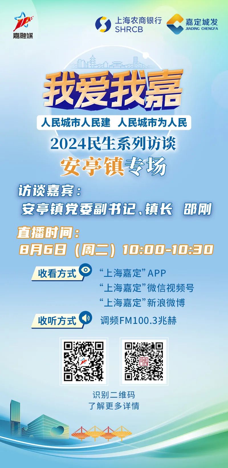 明天(8月6日)10:00,安亭镇党委副书记、镇长邵刚将参加“我爱我嘉”2024民生系列访谈,与嘉融媒主持人田蜜深入街镇民生实事推进落实的第一现场进行互动对话,聚焦区域民生发展领域的共性、个性问题,现场发现问题、解决问题,并围绕区域内市民的关注和期待,作出承诺展望。