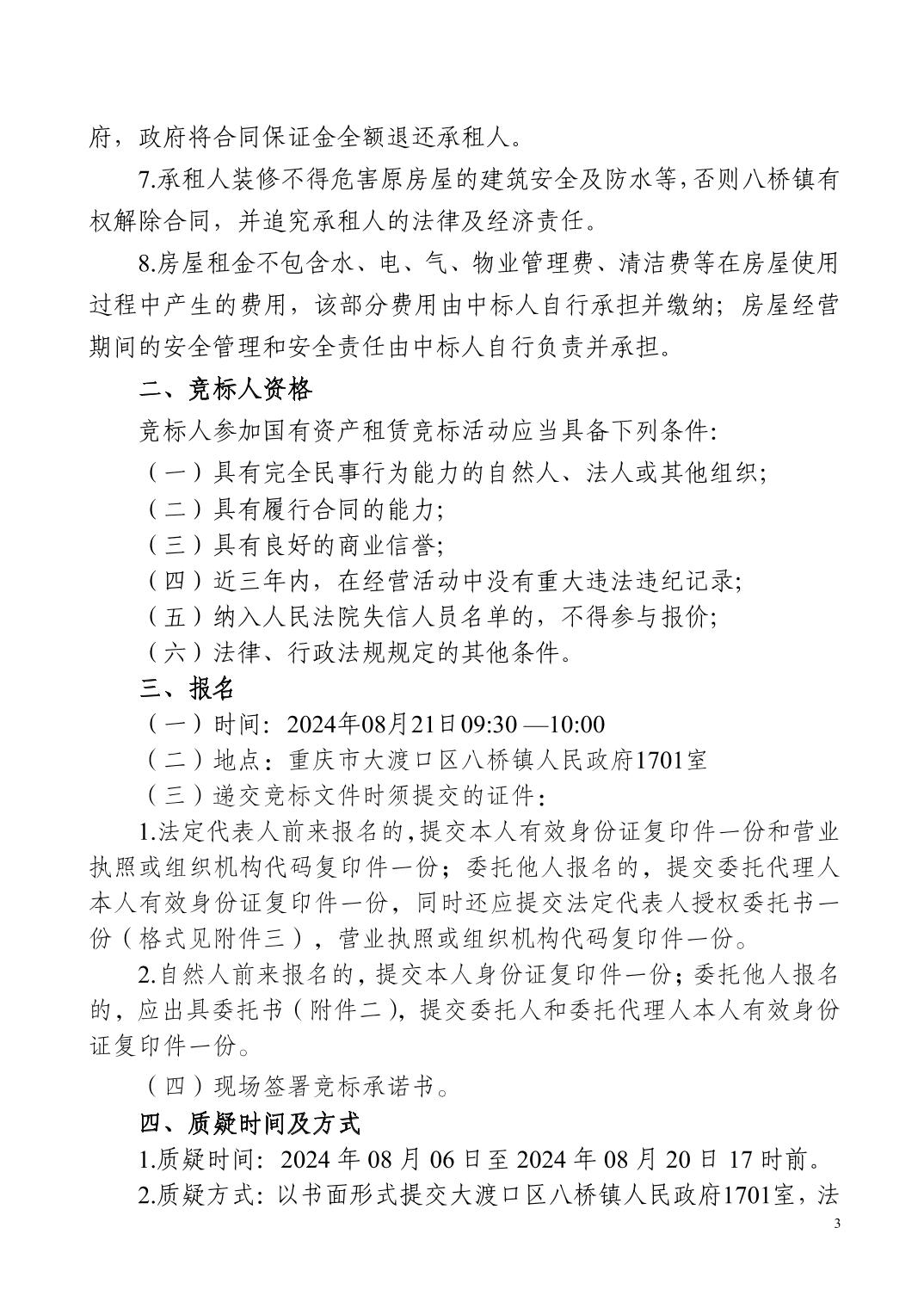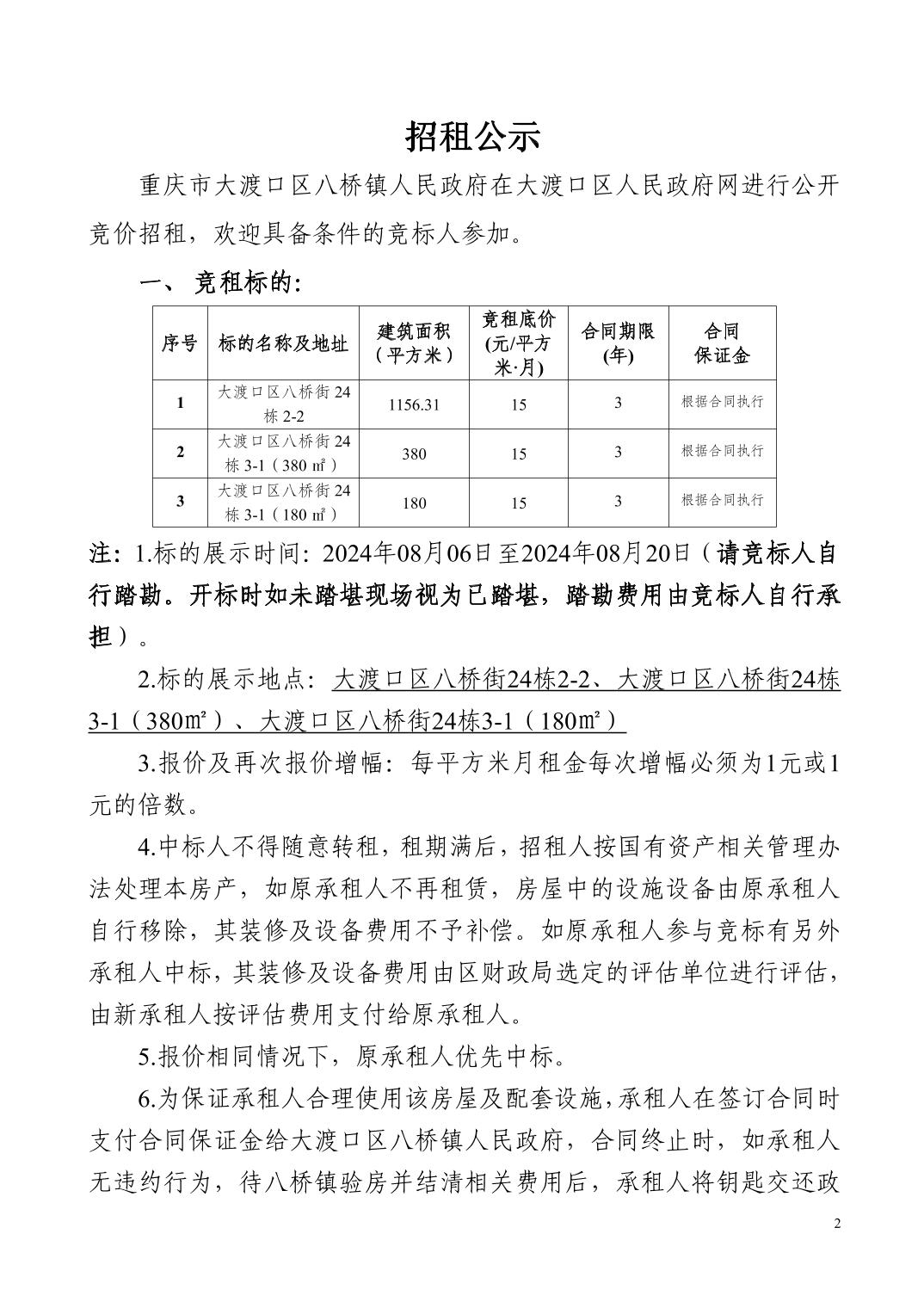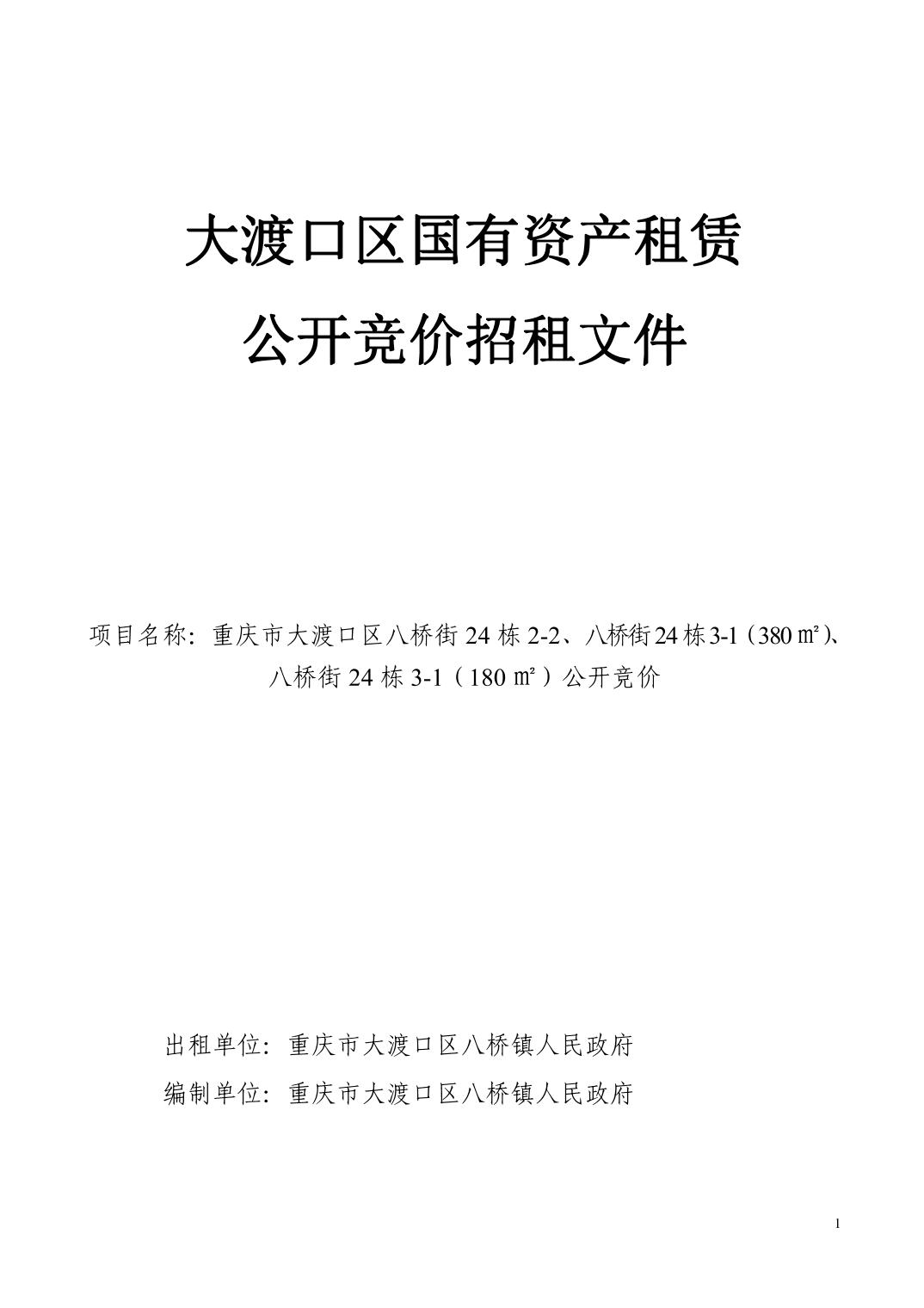 重庆市大渡口区八桥街24栋2-2、八桥街24栋3-1 八桥街24栋3-1招租公开竞价