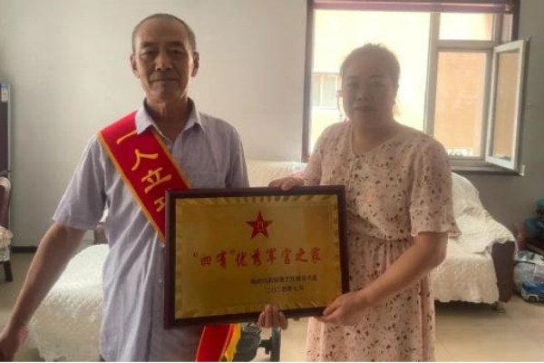 社区的工作人员为优秀的军属送去这份特殊的荣誉并表示祝贺,感谢他们为国家培养一位优秀人才以及为国家社会做出的贡献,家属骄傲的心情溢于言表,这份荣耀不仅属于军人,更属于他们身后默默付出支持的家人,现场的工作人员与家属进行亲切的交谈,详细了解军属们的日常生活、困难需求以及身体健康状况等,为家属的默默奉献表示崇高的敬意,同时祝愿获评军官继续发挥优良作风,为国家的国防事业再建辉煌。
