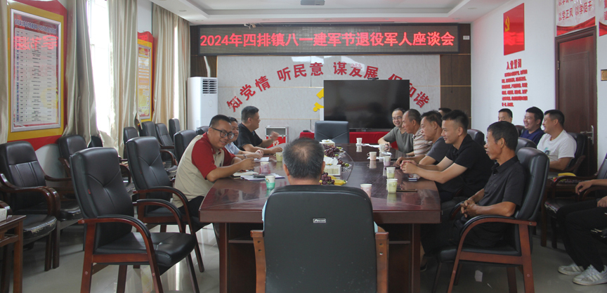 为大力弘扬新时代拥军优属的光荣传统,营造尊军崇军、爱军拥军的浓厚氛围,8月1日上午,四排镇人民政府邀请十余名优秀退役军人代表,参加2024年退役军人“追忆峥嵘岁月,不忘初心使命”慰问座谈会,为他们送上节日的祝福。