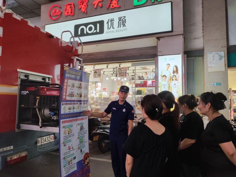 结合晚间商场及周边夜市人流量大、传播速度快的特点,消防宣传员在国贸大厦中央商城醒目位置设置消防安全咨询点,通过播放消防微电影吸引大量休闲遛弯、逛街购物的市民群众围观学习。消防宣传员向过往群众、商户发放消防宣传知识手册、《电动自行车火灾防火常识》等消防宣传资料,有针对性的讲解商业综合体消防知识,向大家普及灭火器的使用方法和火场自救逃生技能,提醒大家养成良好的消防安全习惯,自觉维护辖区消防安全环境。