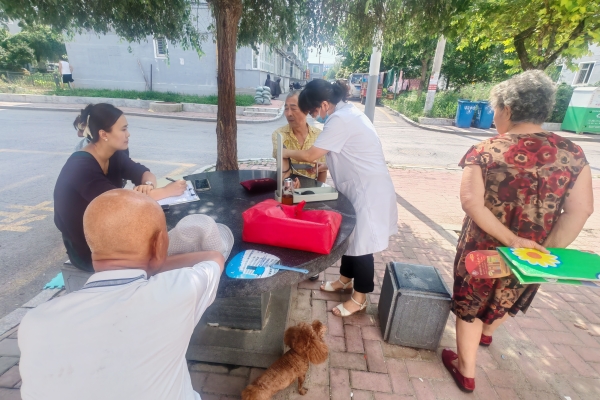 8月8日下午,和平街道四合社区芳园网格党群服务站携手广泰德仁堂,在芳园小区内为辖区老年人开展免费体检活动。