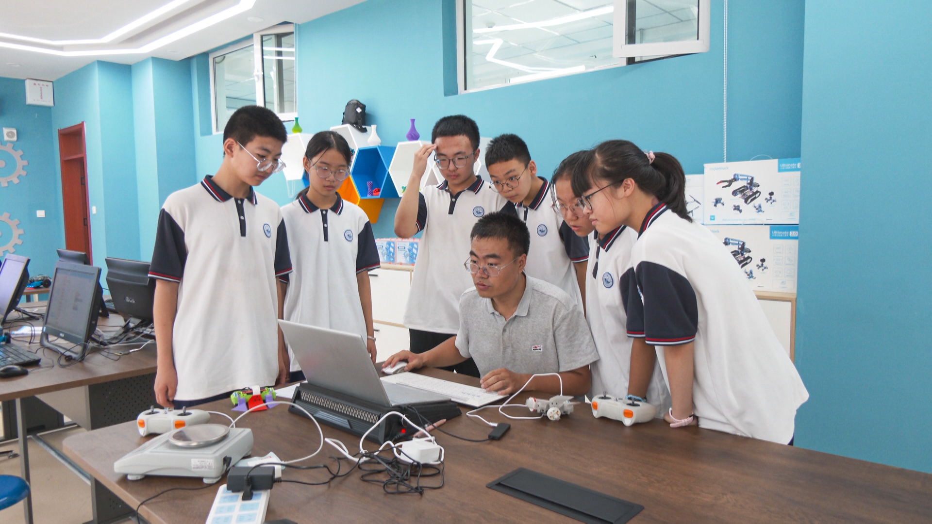 毕皓童是此次参加国赛的学生代表之一,是高平八中的一名初一学生,因在日常的创客课程中表现突出,经社团推荐和学校选拔,获得这次参赛资格。这几天,她将和其他3位同学一起,在老师的精心指导下,全身心投入到比赛训练中。