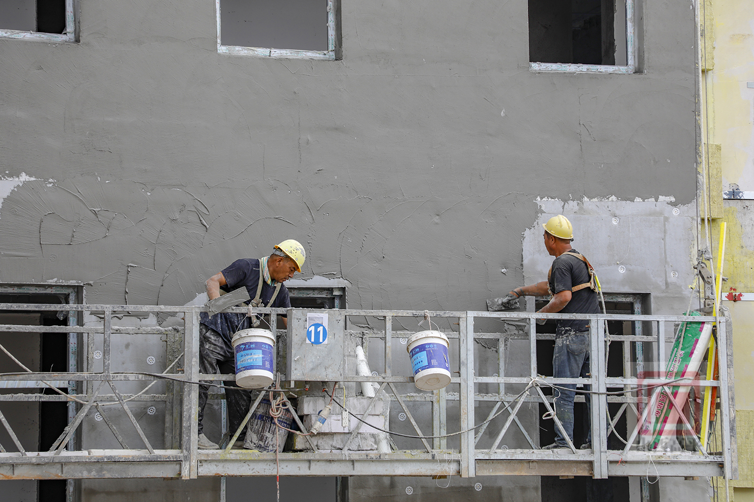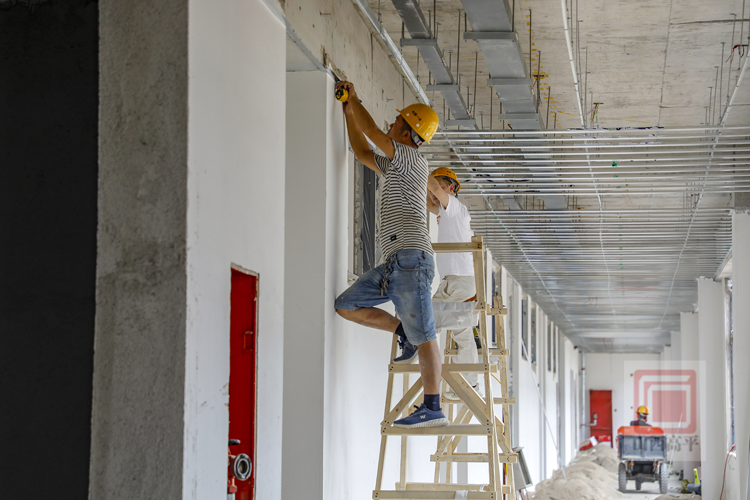 第九中学校项目技术负责人张展鹏介绍说:“现在我们的施工任务主要是进行室内外装饰装修。装饰装修所需要的瓷砖、涂料、保温板等多种材料已进场。现场组织了200余名施工人员、多台机械设备,同步开展作业。同时,为了减少高温天气对施工进度的影响,我们项目部采取了分时段作业、发放防暑降温物品等措施,保障第九中学校项目稳步推进。”