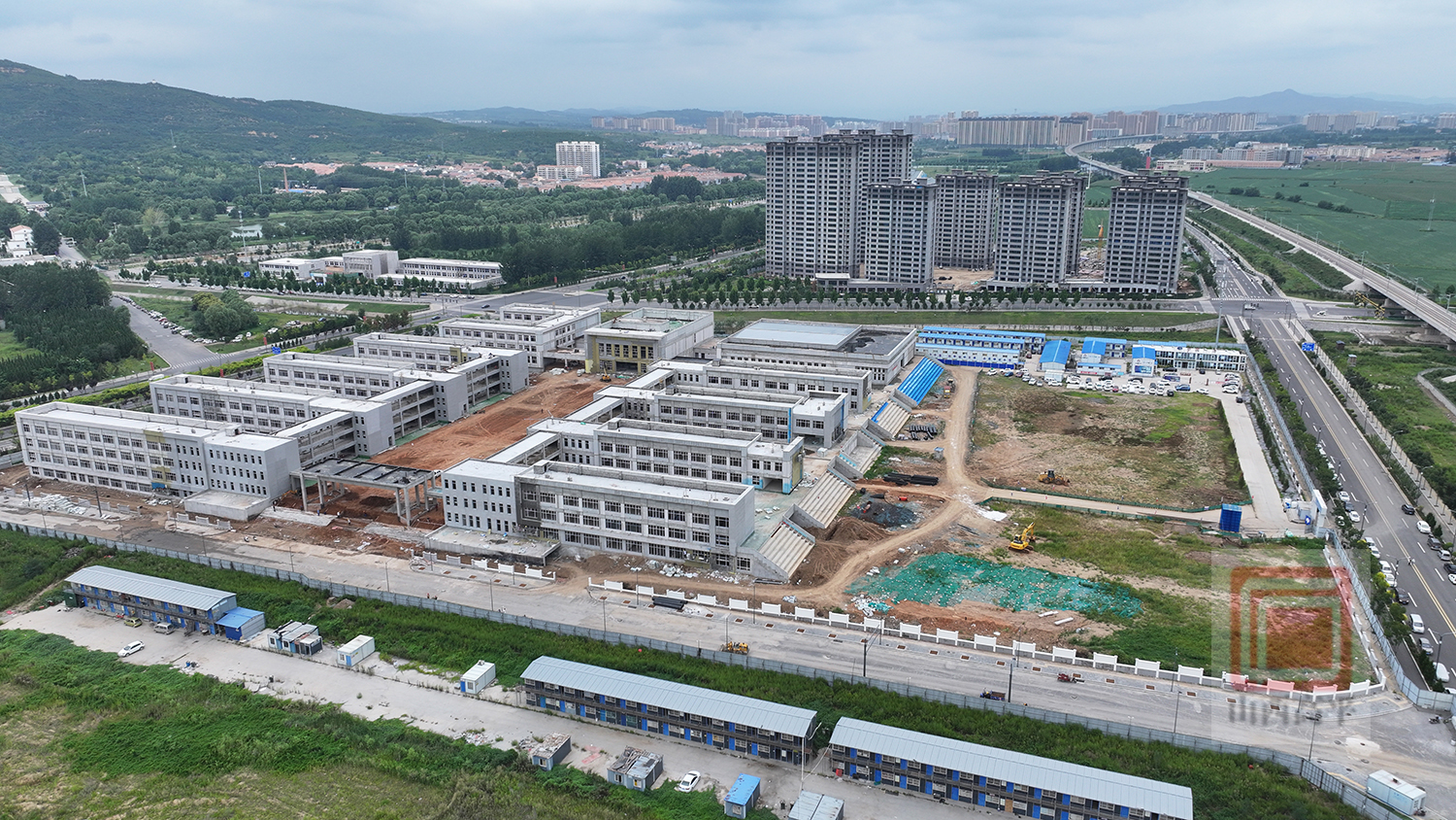 截至目前,第九中学校项目主体结构、墙板安装和风雨操场网架结构已全部完工,正在进行内墙抹灰、窗框安装、屋面工程、外墙保温等室内外装饰装修作业,已完成整个工程总量的70%,预计今年年底全部完工。