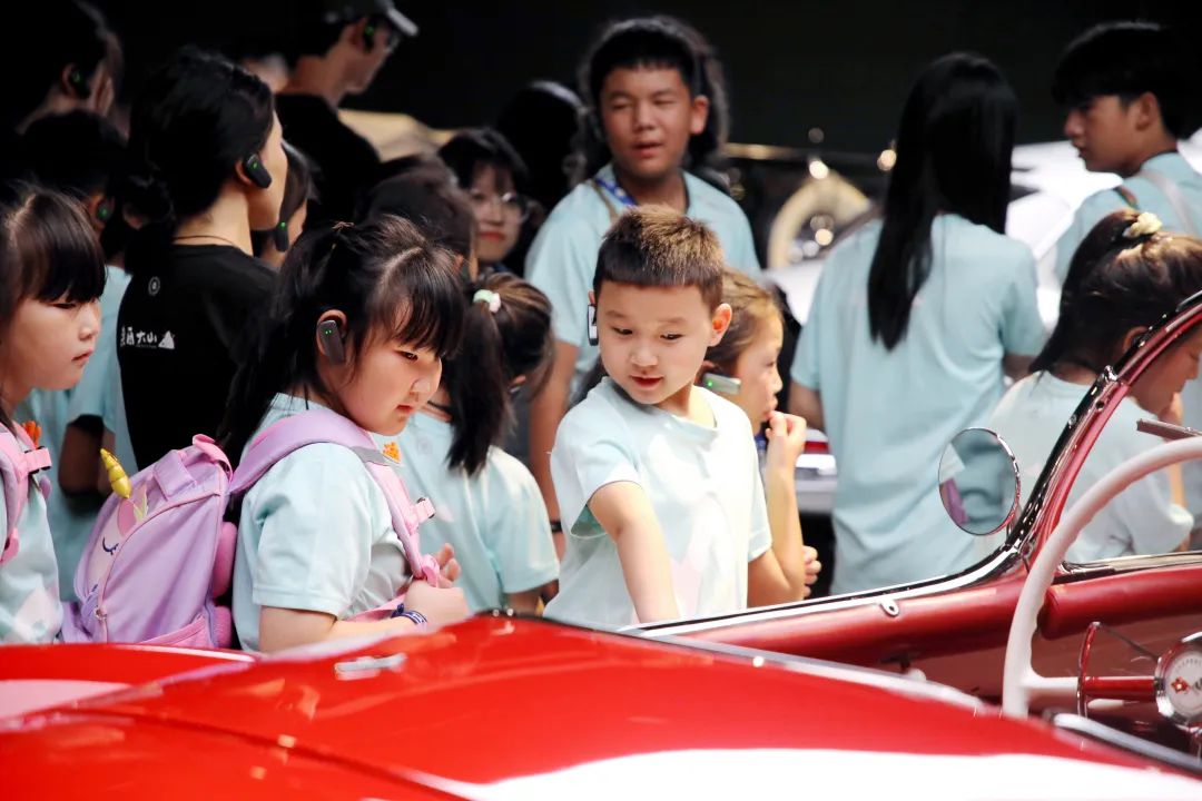 造型前卫的阿尔法·罗密欧、经典的红旗1959 CA72、个性张扬的福特“野马”……学生们在咫尺间了解汽车的百年历史,移步中纵览汽车的变迁。从最早的车马、船、热气球,到后来的蒸汽汽车、滑翔机,再到新能源车、载人航天飞船,科技的进步让孩子们兴奋不已,连连赞叹。“好玩又长见识,原来世界各地有这么多车,造型还都不相同。”甘肃省碌曲县尕海镇中心小学学生才让卓玛说。