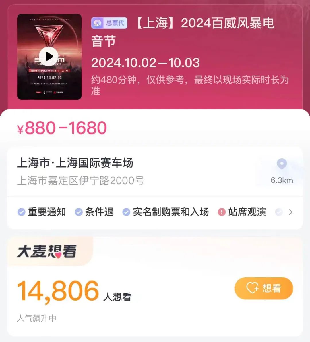 票务方面,记者从相关平台获悉,电音风暴节上海站双日早鸟票880元,双日预售票1180元,双日正价票1380元,VIP双日预售票1680元,VIP双日正价票1880元。