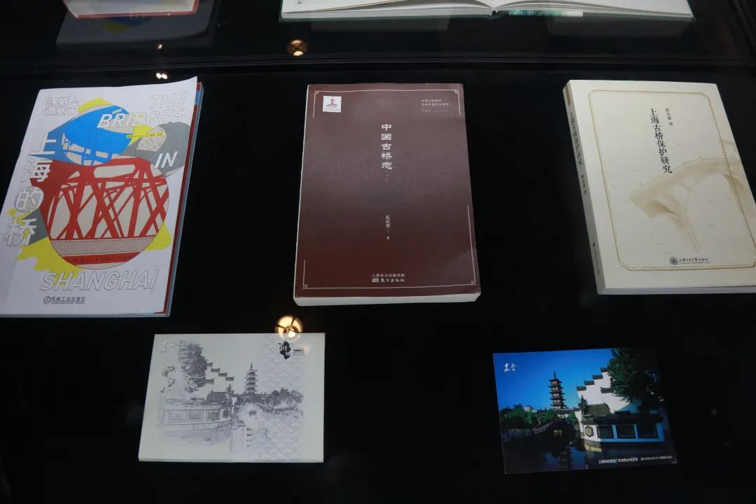 步入展厅核心区域,丰富的桥梁专题文献映入眼帘,如《上海的桥》《中国古桥志》《江南古桥风韵》《上海古桥保护研究》等,既有科普性读物,也有学术著作,以兼顾不同读者的需求。此外,还有记载古桥历史的《嘉定县志》、画家笔下的嘉定桥与水《诗画练祁》、收录了珍贵的古桥与河流老照片的《影像嘉定》等嘉定地方文献,既凸显图书馆作为主办单位的文献收藏特色,也为读者深入了解江南桥水文化提供阅读指引。