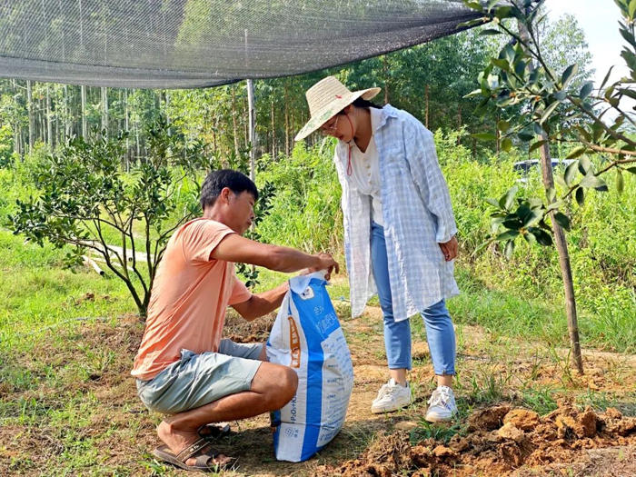近日,记者来到鹿寨镇新胜村村民王怀林的果园里,看到覃雁瑜正弯腰站在果树前,神情专注地查看脆蜜金桔的病虫害情况。王怀林今年种了5亩脆蜜金桔,这几天他打算开始施放秋肥,但是对于施肥还存在不少困惑,于是他联系到村里的“田秀才”覃雁瑜寻求帮助。