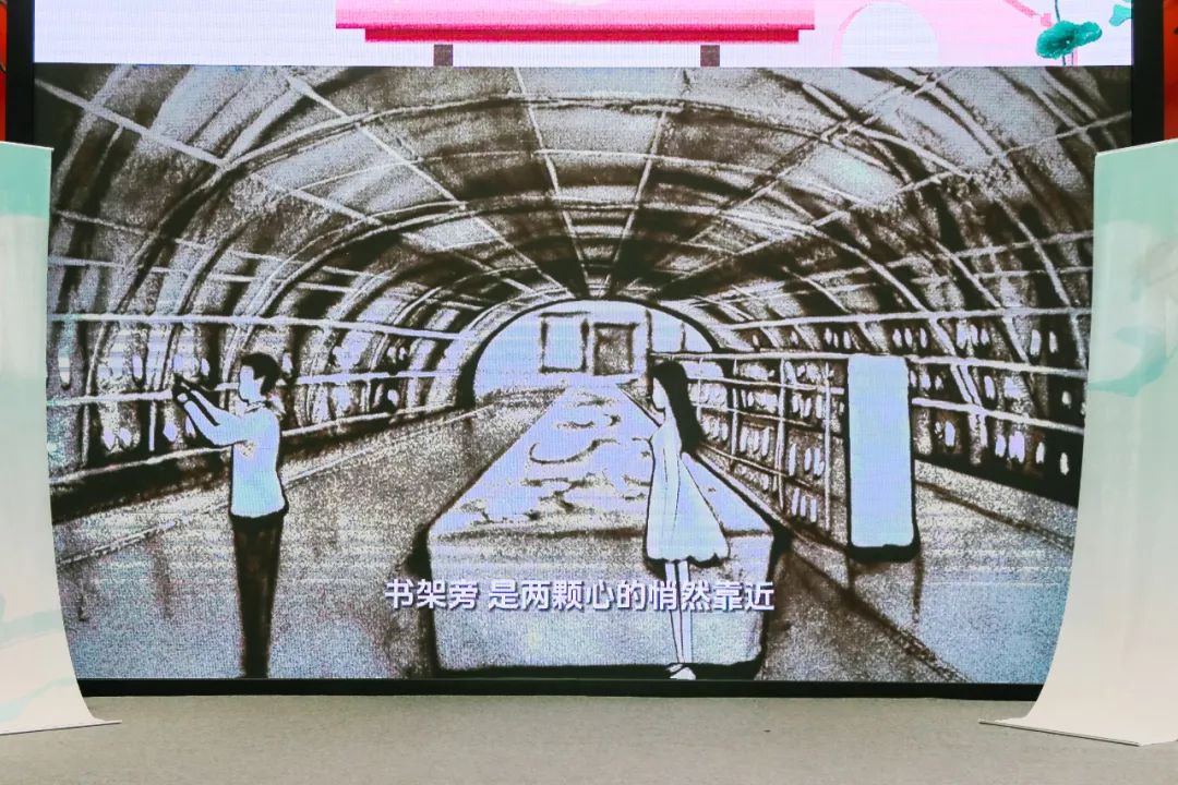 恋爱时的甜蜜微笑、求婚时的紧张与期待、夫妻共同参与志愿服务的温馨场景……画面流转间,细腻的沙粒在光影下变幻出一个个生动场景,描绘了两位热爱阅读的年轻人相互陪伴、共同成长的过程。“看着沙画仿佛我又回到了过去的一幕幕,特别是我在其他志愿者的帮助下求婚成功的瞬间,那份激动与喜悦至今仍历历在目。”邢益鹏感动地说,这个充满爱意的日子里,祝愿每个人都能拥有属于自己的幸福故事。