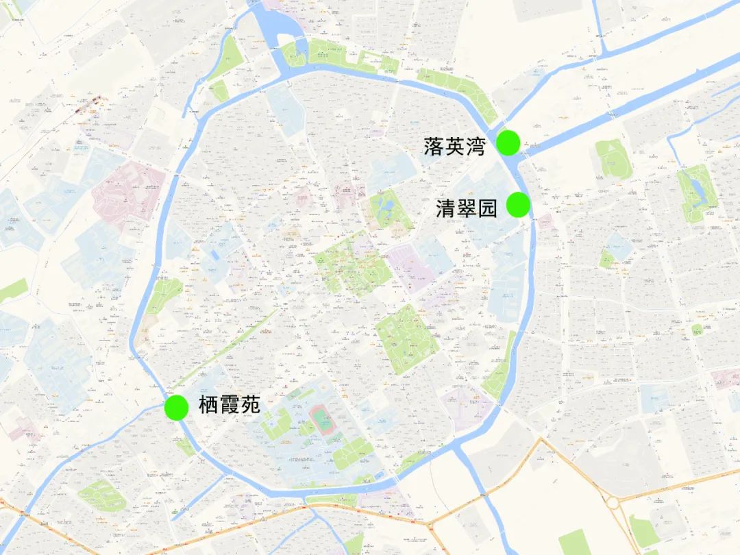 落英湾位于嘉定环城河外圈东门吊桥南侧,三面临水,占地0.94公顷。原址是2022年建成的环城河绿地,周边为居民住宅集中区,为推进公园城市建设,满足居民游憩需求,2022年对该绿地提质改造,同年12月底对外开放。
