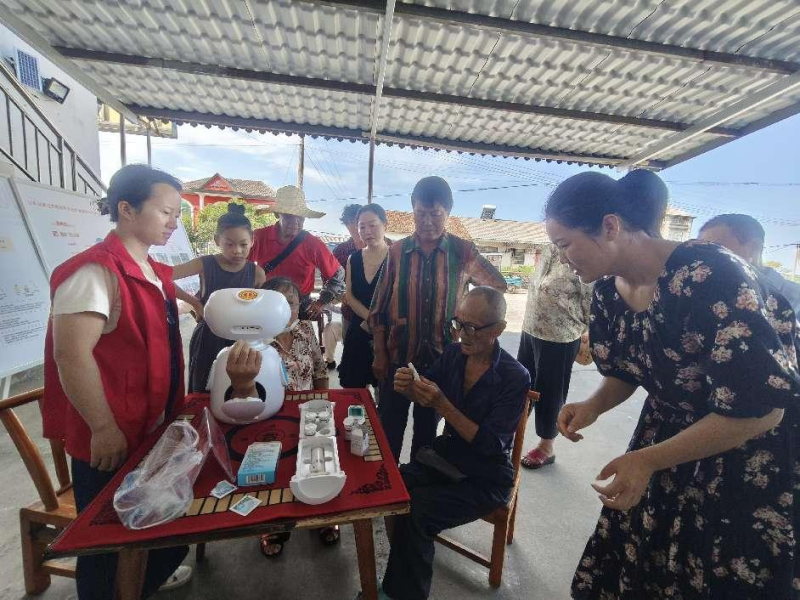 据了解,智能机器人可以进行血压、心率、血氧、胆固醇、血糖等8项体征测量,操作便捷,几分钟之内就能提取人体的健康数据。活动现场,村民们排起长队,都想体验一下智能机器人的体检服务。“真的太方便了,没想到这么小的一个机器人就能测量这么多项指标。”新颖的体检方式吸引了100余位村民前来参加,大家切身感受到了人工智能为生活带来的便利,也感受到了干部们的贴心服务。