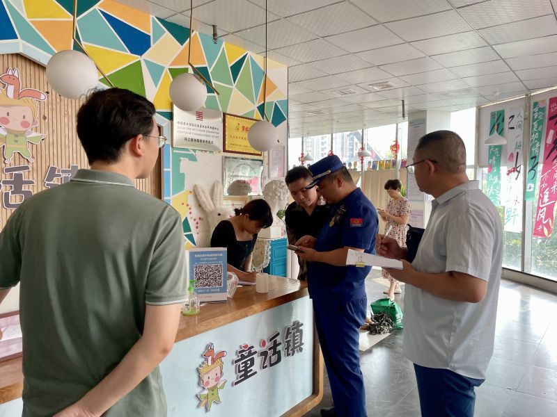 当天上午,检查组一行先后来到艺思教育培训、思齐托辅中心、童话镇创意美术机构、达尔学院等校外培训机构,详细了解各机构消防安全工作开展情况,现场查阅各机构消防安全管理制度、应急预案制定、员工培训演练等相关台账资料,重点对各机构消防设施器材设置、机构内部安全疏散条件、日常防火检查巡查情况进行了全面排查。针对检查中发现的部分校外培训机构疏散通道堆放杂物、安全出口标志设置不符合标准、防火巡查记录不详实等问题,检查人员现场对机构负责人进行了全面反馈,责令各机构立即整改,要求各机构负责人严格落实消防安全主体责任,加强消防安全管理和自纠自查力度,务必保持“生命通道”畅通,全面提升机构抵御火灾的能力,筑牢暑期消防安全屏障。