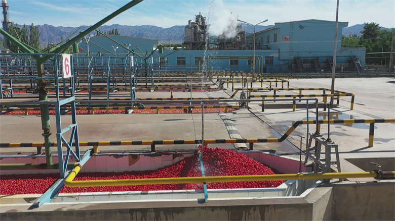 近日,甘肃弘昌科胜番茄制品有限公司厂区内机器轰鸣,工人们收购番茄、清洗番茄、加工番茄酱,呈现出一片热闹忙碌的生产场景。