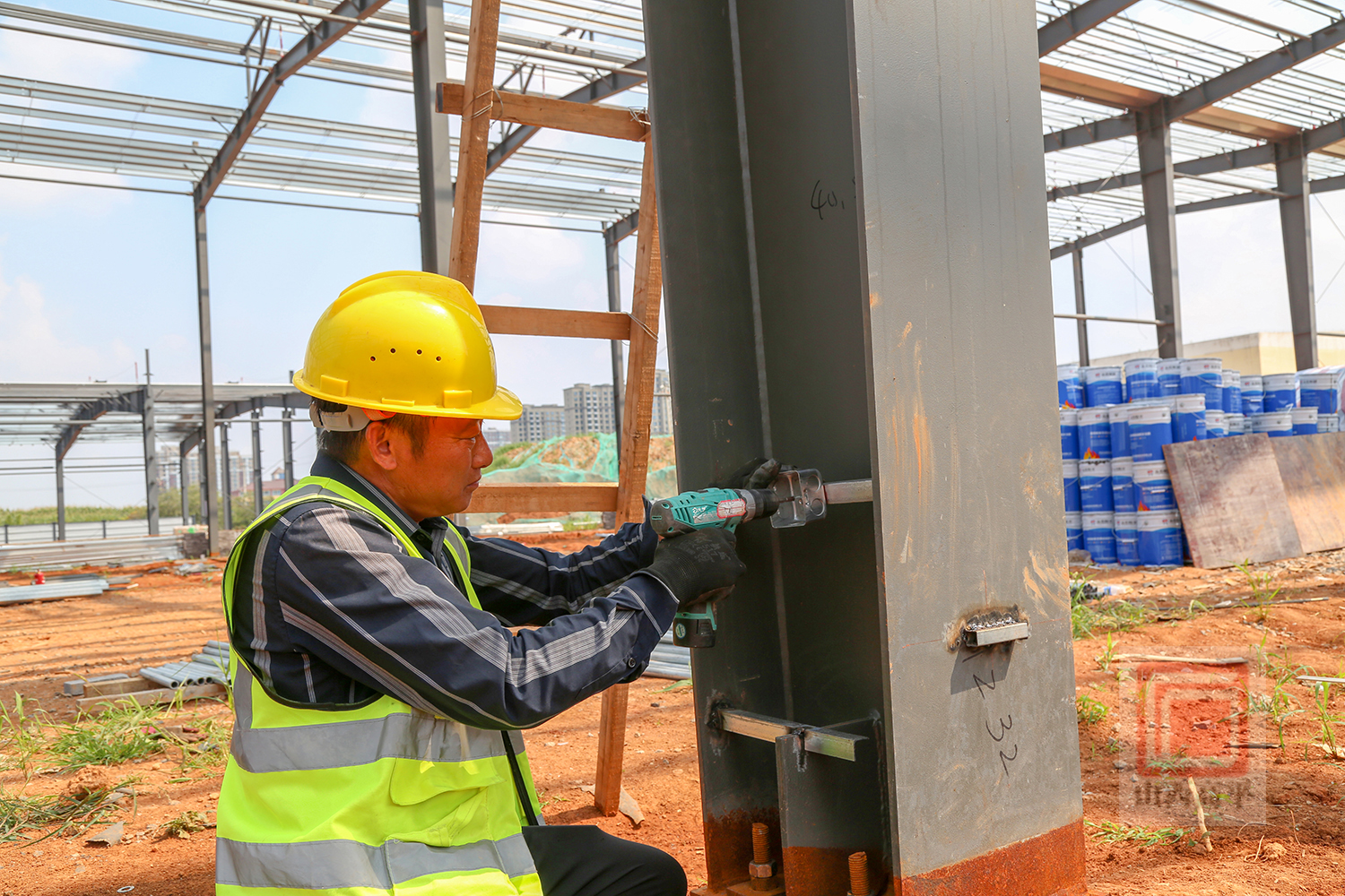 该项目施工现场负责人严威虎介绍道:“自5月中旬开工建设以来,我们细化目标任务,科学组织施工,采取人工+机械协同作业的方式,有序推进项目建设。截至目前,资源化中心、维保中心两个钢结构厂房主体结构已完成,智慧管控中心地基处理、基础及消防水池底板钢筋已完成,正在进行混凝土浇筑作业,已完成总工程量的40%。”