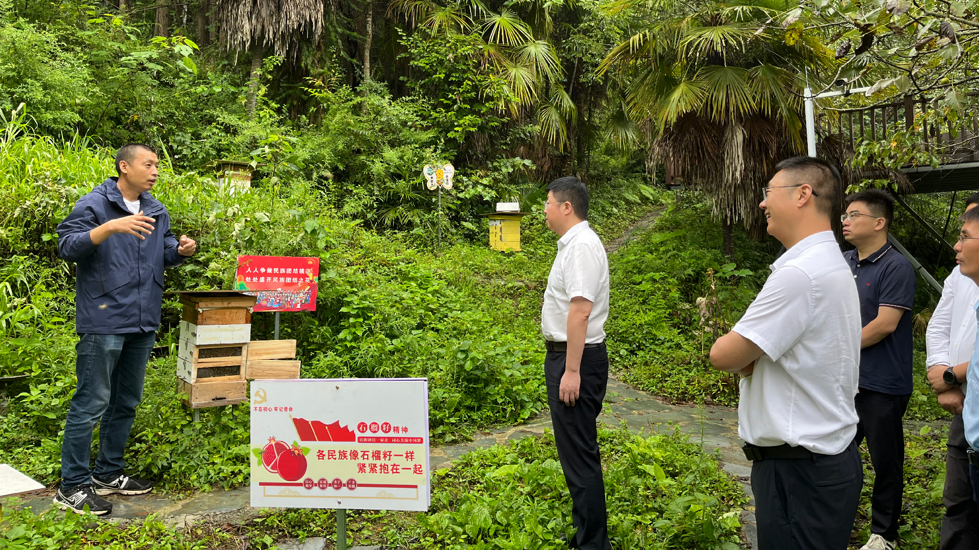 在木皮藏族乡金丰村,李南希深入到“生态统战 同心平武”实践基地——猫熊谷家庭农场,与“蜜蜂博士”张玉波进行亲切交谈,肯定了张玉波同志在围绕中心、服务大局方面做出的突出贡献,是平武统战系统践行生态统战工作的生动实践。他要求,统战部门要给予更多关心和支持,及时帮助解决困难问题。李南希详细聆听了张博士利用自身学识,坚定做“两山理论”的践行者,带动一方百姓发展致富的生动故事。