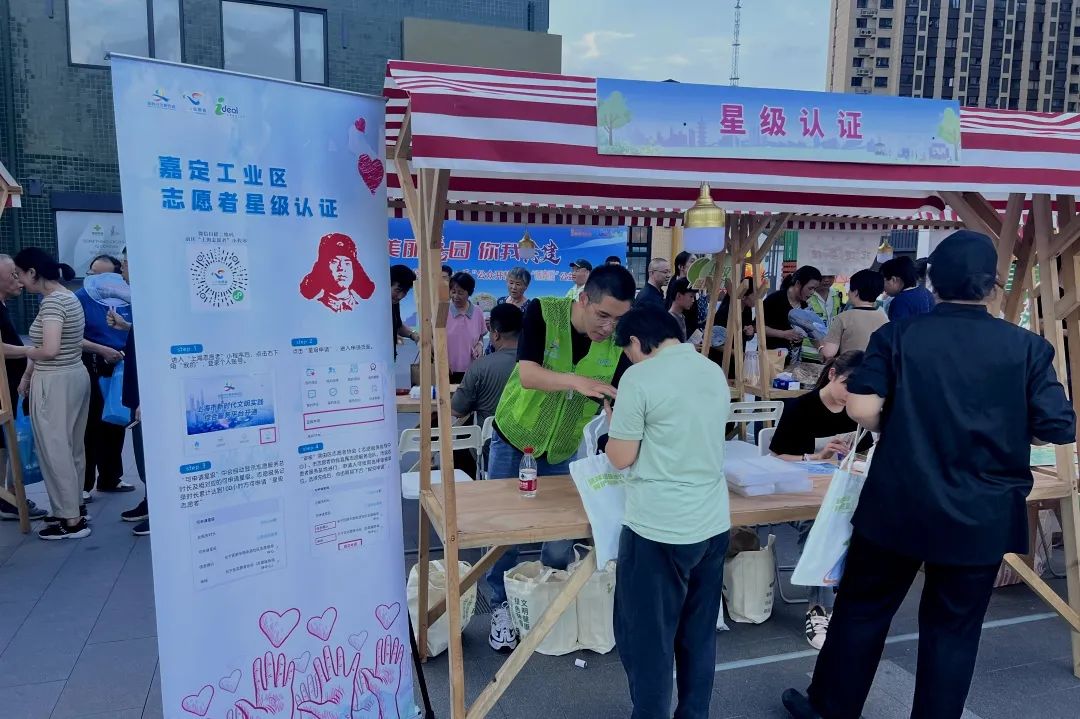 8月15日晚上,2024年嘉定工业区“政务公开”公众开放日暨“暖嘉园”公益集市在永盛里商业街区举行。