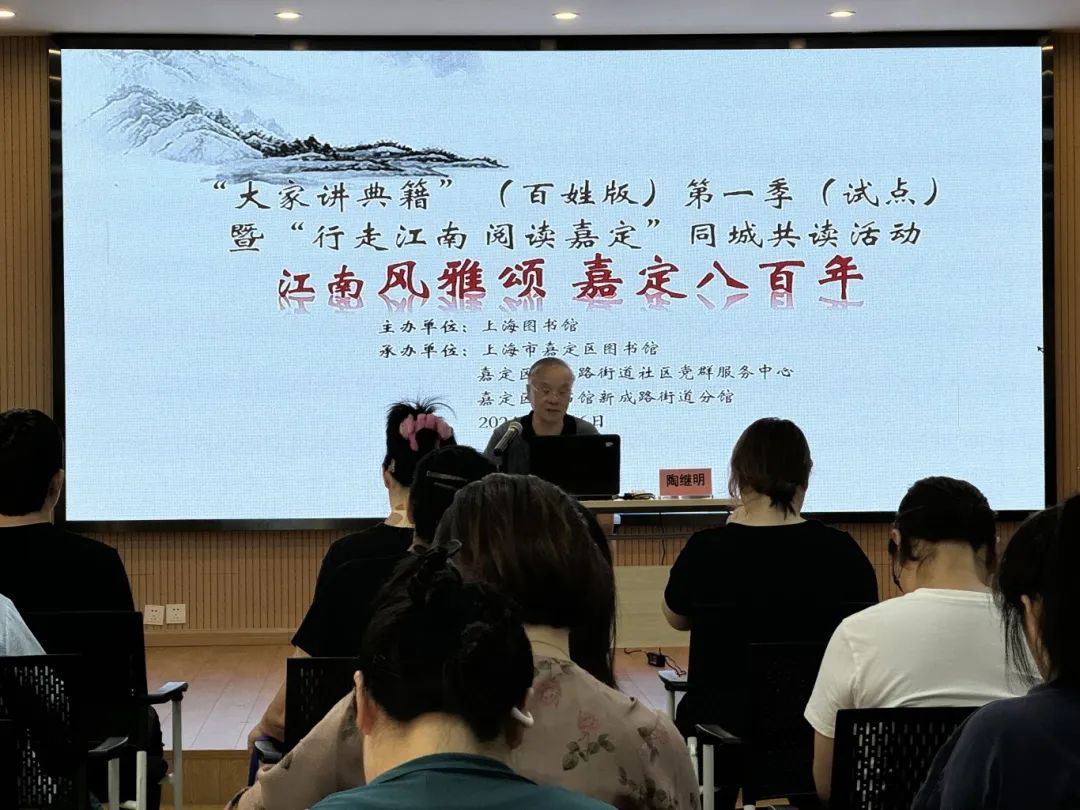 据了解,适逢上海书展,上海图书馆“大家讲典籍”系列活动推出百姓版,以“行走江南 阅读嘉定”同城共读为依托,在嘉定举办读书进社区的系列活动,营造“爱读书、读好书、善读书”的浓厚阅读文化氛围。