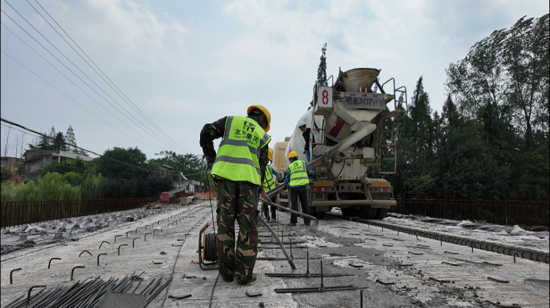 “往这边打,再往这边打一点,车尾往这边倒。”位于董市镇白马路的血防桥施工现场,脸上汗如雨下的陈进国边喊叫边打手势指挥混凝土罐车驶入施工现场。