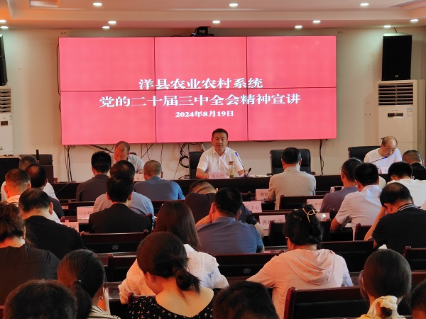 8月19日,洋县农业农村局召开党的二十届三中全会精神宣讲大会。会上,县农业农村局局长强长虎传达了县委关于学习贯彻党的二十届三中全会精神的总体部署和要求,并结合洋县农业农村工作的实际,从“学、谋、干”三个方面对全系统提出了具体要求。县农业农村系统全体干部职工参加了会议。