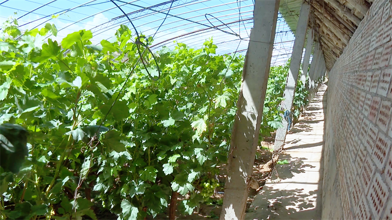 走进新坝镇暖泉村村民周晓玲家的温室大棚内,一排排葡萄藤蔓郁郁葱葱、长势旺盛,色泽翠绿、果粒饱满的葡萄挂满枝头。她家的温室是2008年修建的,由于运行多年,透光性不佳、增温效果差等问题逐渐显现,影响葡萄生长。今年村上争取了项目资金,对老旧温室进行了改造提升。“今年把葡萄棚整体改造过了,环境也好了,再就是葡萄棚又坚固了,我们种的10个葡萄棚,一年收入就是十几万元。”周晓玲说道。