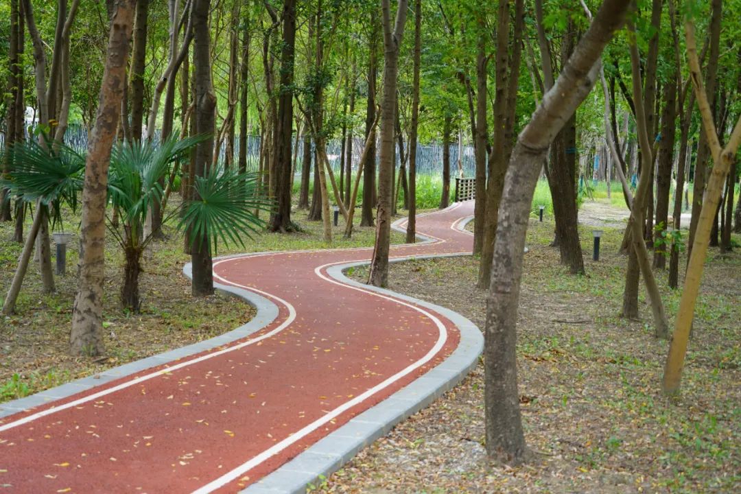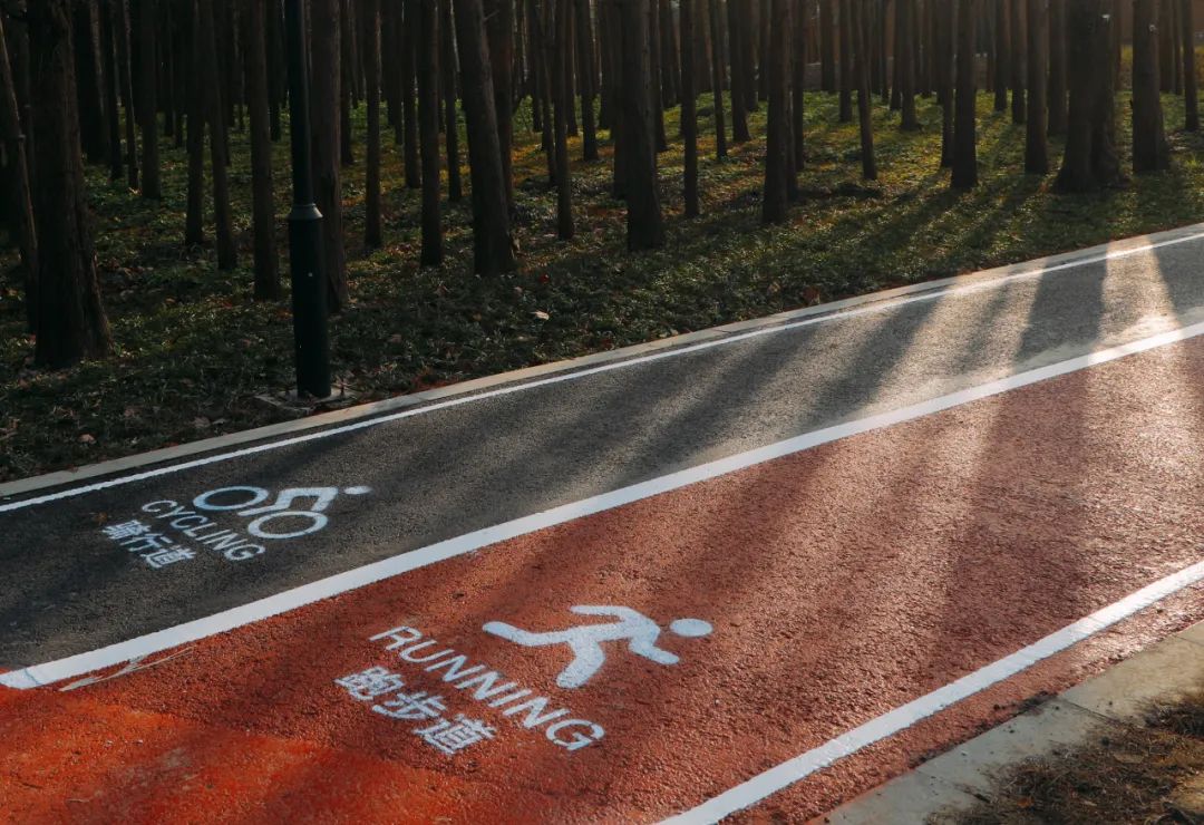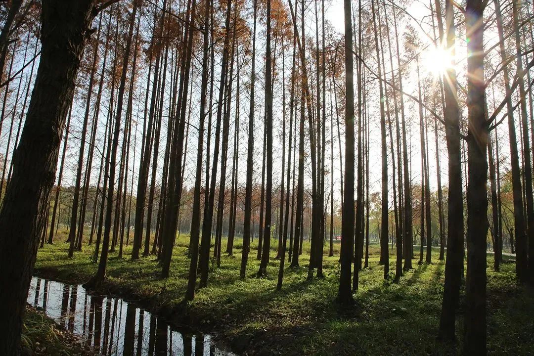 沿着骑行道,穿梭于杉林,感受湿地风貌