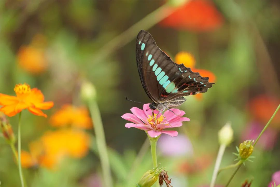 园内波斯菊正在怒放,蝴蝶翩跹起舞