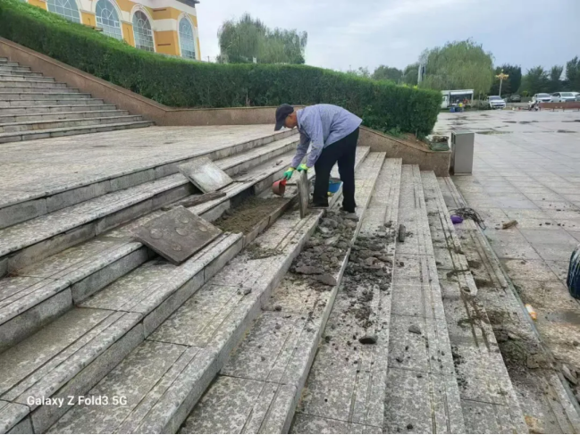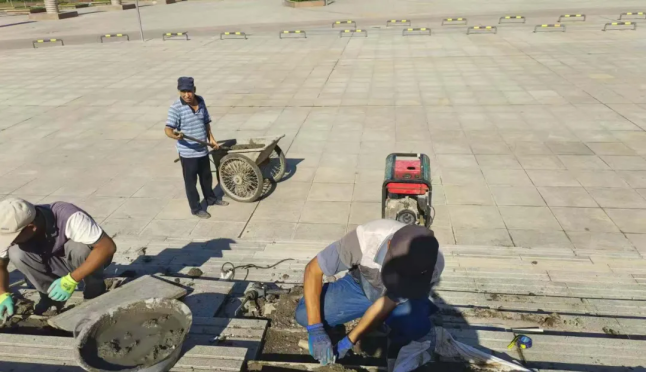 本次工作对灵州广场、火车站广场、秦渠公园、新区公园内的破损地砖进行了摸排统计,制定了维修方案,组织人员集中进行维修。通过此次修复,既为城市“美容”,又提升了市民“脚下的安全”。
