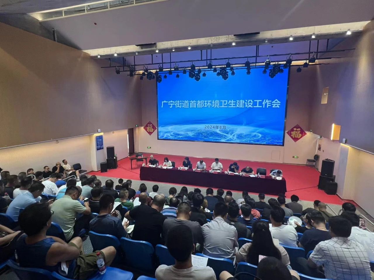 召开广宁街道环境卫生建设工作部署会,辖区规模以上企业、学校、建筑施工单位、仓储物流企业、物业单位、保洁公司、快递单位、六小门店共120余人参加会议。会上通报问题点位,并对环境整治工作进行动员部署,要求涉及的部门压实责任,各司其职,高度重视,立即开展环境专项整治工作,全员同心同德,齐心整治环境秩序。
