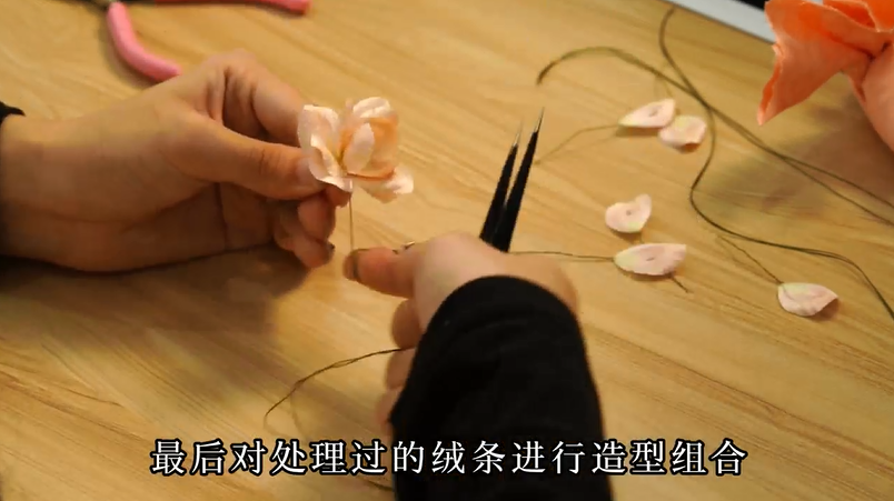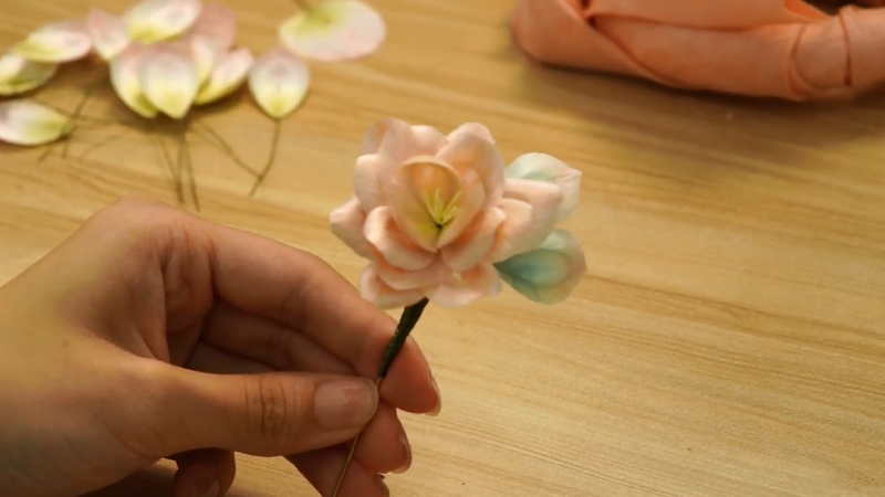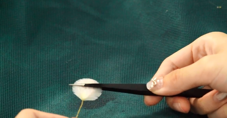 7.做造型:使用镊子将湿的花瓣夹出弧度。