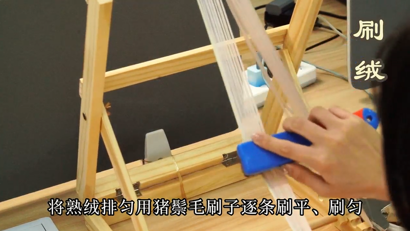 2.刷绒:将绒排匀用鬃毛刷子逐条刷平、刷匀。