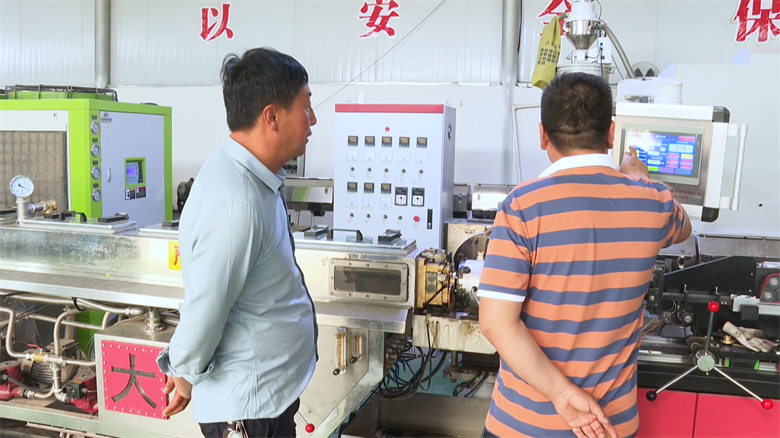 走进旺稼农业发展有限公司的生产车间里,机器轰鸣,滴灌带生产线高速运转,工人们正在进行测量、收卷等工作。去年以来,骆驼城镇新建村抢抓高效节水农业发展机遇,深化村集体经济公司化运营改革,依托旺稼农业发展有限公司生产高效节水管材,走上了工业化道路,不断激发村集体经济发展活力。“现在我们每天滴灌带的生产量是140卷,总共生产滴灌带是35000卷,生产出来的滴灌带基本在我们本县就能销售完毕,同时为我们村集体带来70万元的收入。”厂长李发伟介绍道。