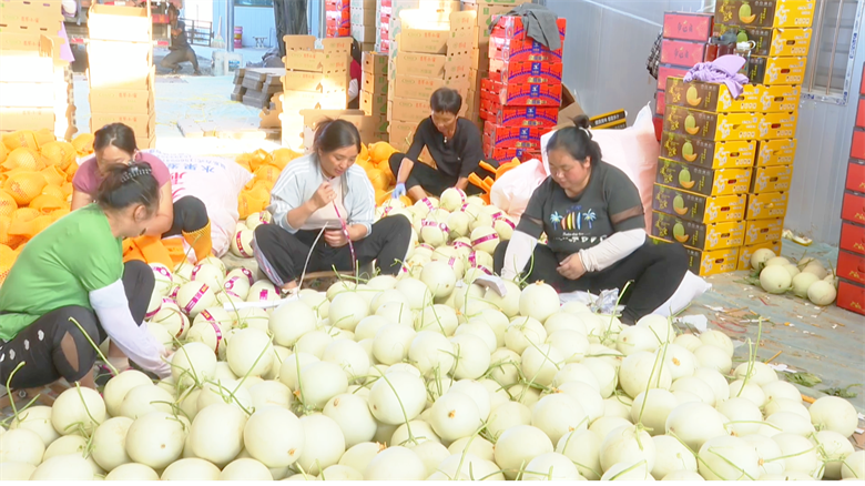 这几天,南华镇成号村果途种植农民专业合作社的千亩蜜瓜产业园迎来了收获期,工人们忙着包装、贴标、装车,现场一派热闹繁忙的丰收景象。该合作社依托高台县光照充足、昼夜温差大等优势,运用增施有机肥、穴盘基质育苗、水肥一体化、病虫害绿色防控等技术措施,种植出的蜜瓜品质上佳,深受市场欢迎。“目前我们合作社总种植面积达到500亩左右,主打玉菇和小蜜两个品种,亩均产值能达到12000元左右,销往江浙沪、四川、北京等地。”经理于亮说。