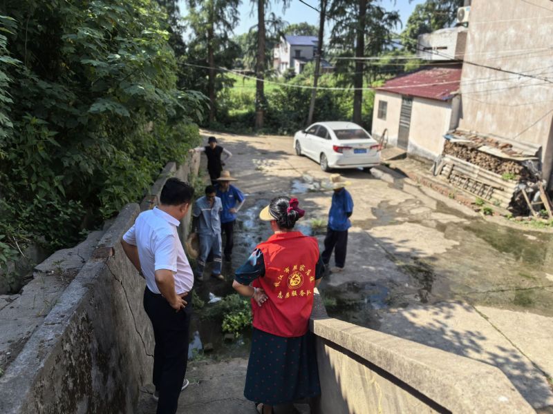 在收到居民诉求后,社区工作人员和联户长立即赶到现场查看,经过多方观察和询问附近居民,初步判定是自来水管破损了。不一会,自来水厂工作人员也赶到现场,因为集镇老街水管年久,加上该处地势比较复杂,炎热天气直接停水排查会影响居民生活,所以选择比较保守的方法进行排查。维修人员经过细致地检查,最后准确的找到渗水位置,经过紧张有序的施工处理,问题得到了解决。