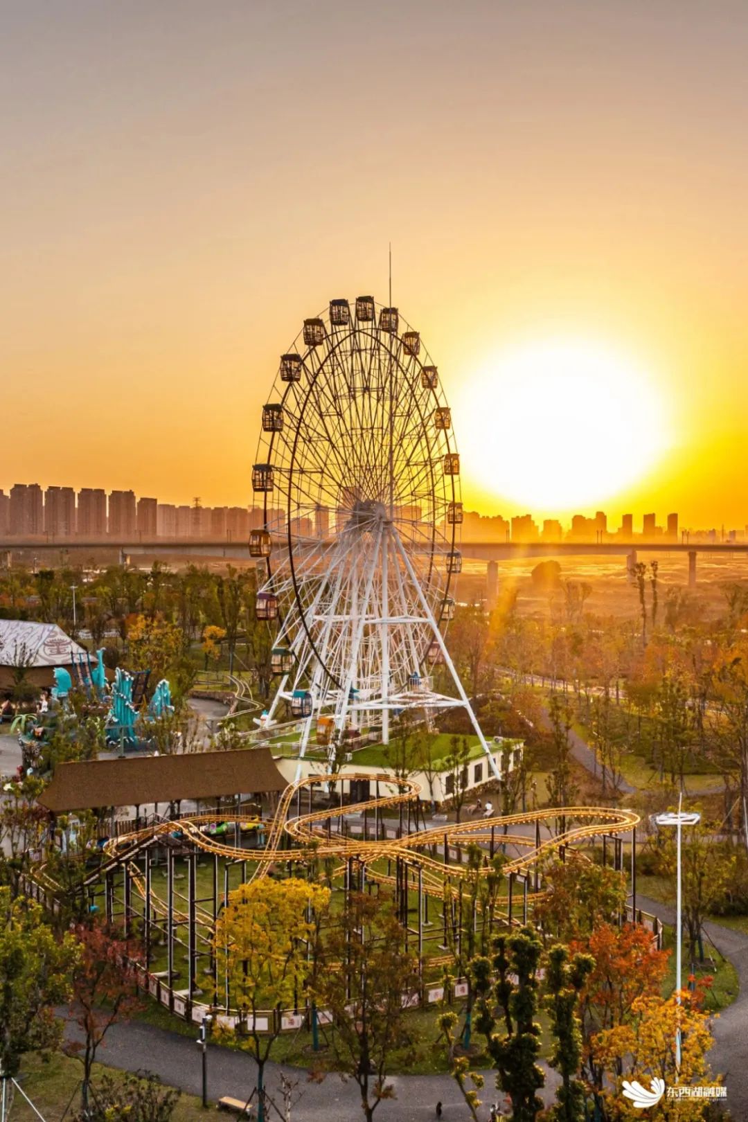 暑气初散,碧空晚霞,步入梧桐雨,就能在所有角度看到摩天轮五颜六色的车厢慢悠悠地划过天空,就像一颗颗挂着天上的彩虹糖,任谁都想去尝一下。