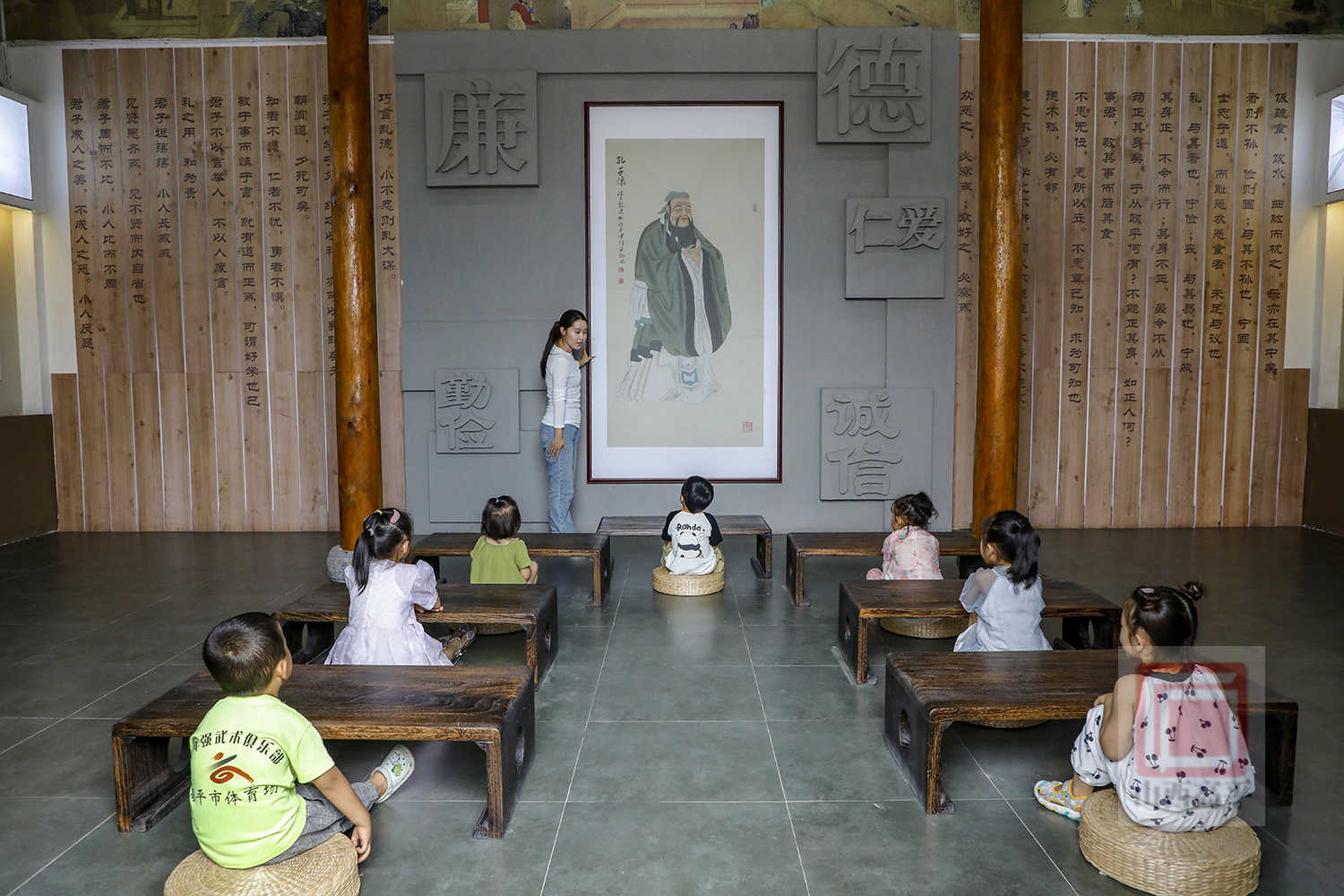 “子曰:学而时习之,不亦说乎?有朋自远方来,不亦乐乎……”初秋时节,来到伯方村传统文化国学馆,一句句脍炙人口的经典语录从馆内传出,声音稚嫩而有力,让人不自觉地轻声附和。推门而入,只见七八个小朋友正席地而坐,跟着老师一字一句地朗诵孔子的千古名句,感受国学的魅力。