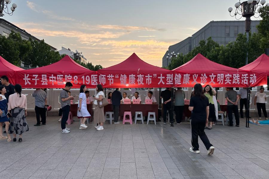 为庆祝第七个中国医师节,8月19日晚,县中医院在府前广场举办“健康夜市”义诊活动,为广大群众提供优质、便捷的中医特色诊疗服务。