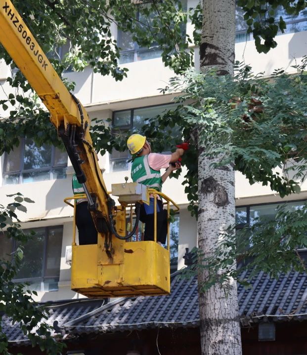 夏季是病虫害的高发季节,养护工人们积极对夏季多发的白粉病、天牛等病虫害进行药物防治,并及时剪除病虫枝条,保护植物旺盛生长。