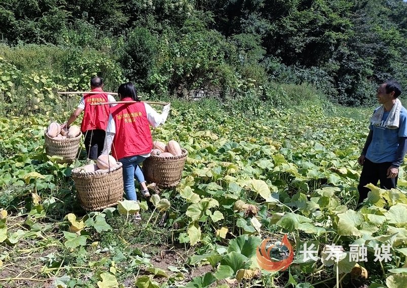 采摘、传递、装车……尽管天气炎热,但党员志愿者个个热情不减、干劲十足。采收的南瓜堆放在瓜农家的房前院坝,处处弥漫着丰收的气息。