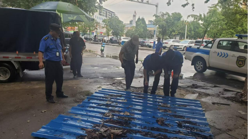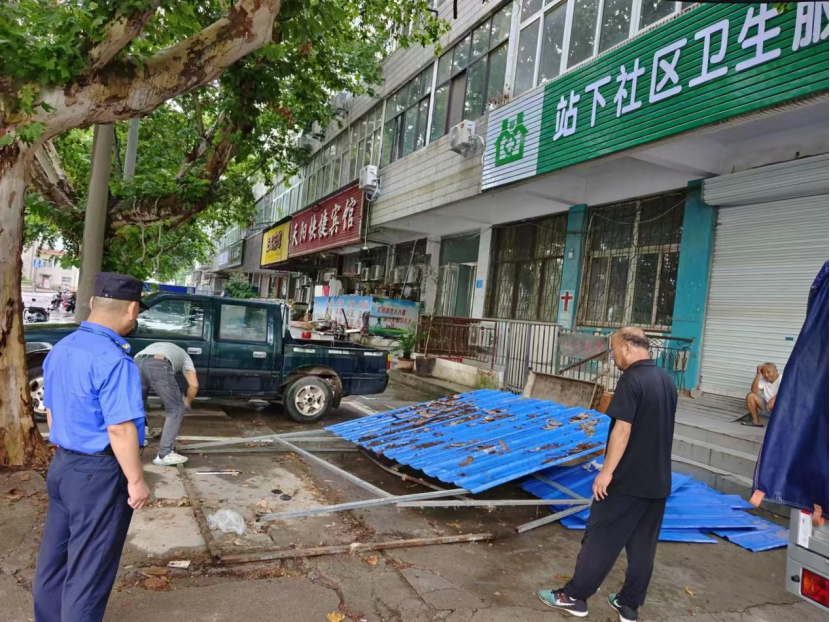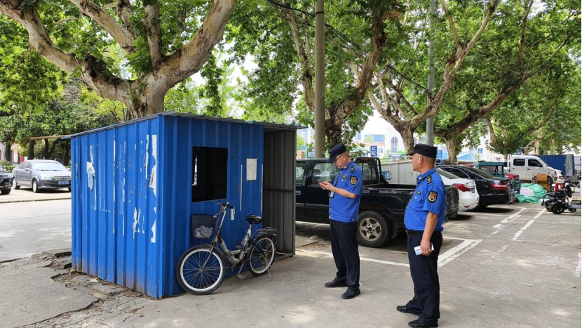 8月21日,县城市管理局通过12345热线平台,接到市民投诉,西湖山庄小区东门外南侧人行道空地存在违章搭建的铁皮房,房内随意堆放着各种杂物,影响周边居民的正常生活。辖区中队第一时间赶往现场查看,对涉诉路侧搭建铁皮房问题进行确认。经调查,该处铁皮房为疫情防控期间站下社区卫生服务站所设置,当时用于核酸检测,面积近20平方米。疫情结束后,未能及时拆除。