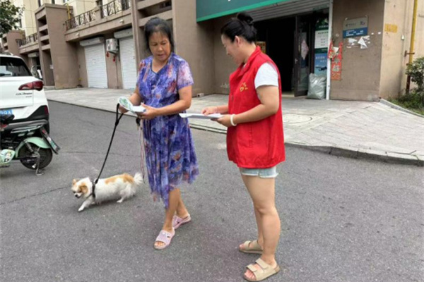 其次工作人员身穿红马甲明显瞩目,能提升宣传的效果。宣传过程中,看到有未牵绳的宠物狗,工作人员会主动上前宣传文明养宠应该牵绳并且嘱咐居民日后要养成习惯,既是对行人的保护,也是对宠物的一种保护。日后会定期进行宣传,巩固宣传效果,建设文明社区。