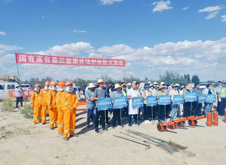 近日,国有高台县三益渠林场联合宣化镇政府、宣化镇派出所、宣化镇中心卫生院、宣化镇寨子村等相关单位在林场东滩林班组织开展了森林草原防灭火应急演练,约60人参加活动。