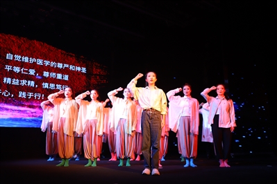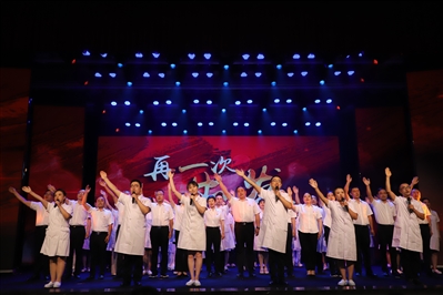 我们宣誓:我志愿献身人类的健康事业;自觉维护医学的尊严和神圣;敬佑生命,救死扶伤,平等仁爱,尊师重道;诚实守信,恪守医德,精益求精,慎思笃行;以上誓言,源于心,践于行。追寻脚步高铁上的生命接力医者仁心托举生命破茧成蝶医疗下沉进社区担负使命“医”脉相承新征程 再出发今年8月19日是第七个中国医师节,主题是“崇尚人文精神 彰显医者仁心”。当晚,我区在潞城人民大礼堂举行第七个中国医师节“生命守护者”大型情景主题晚会。情景剧以一场生命救护为主线,激情演绎了他们“医”往无前、“医”发千钧、“医”技之长、“医”寸丹心、“医”脉相承的医者故事。其中穿插有歌曲《守护生命的光》、舞蹈《绝不止步》、情景朗诵《追光》、歌曲《生命的光亮》、音乐剧《我在你身边》等,大力弘扬了“敬佑生命、救死扶伤、甘于奉献、大爱无疆”的新时代医疗卫生职业精神,精彩的表演赢得了现场观众阵阵掌声。晚会在大合唱《再一次出发》中落下帷幕。