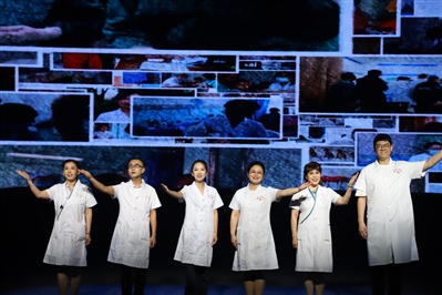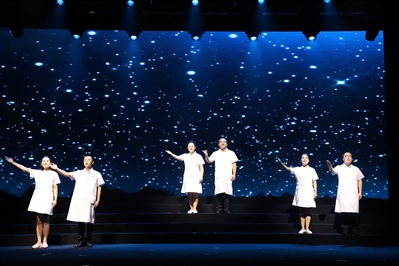 情景剧以一场生命救护为主线,激情演绎了他们“医”往无前、“医”发千钧、“医”技之长、“医”寸丹心、“医”脉相承的医者故事。其中穿插有歌曲《守护生命的光》、舞蹈《绝不止步》、情景朗诵《追光》、歌曲《生命的光亮》、音乐剧《我在你身边》等,大力弘扬了“敬佑生命、救死扶伤、甘于奉献、大爱无疆”的新时代医疗卫生职业精神,精彩的表演赢得了现场观众阵阵掌声。晚会在大合唱《再一次出发》中落下帷幕。