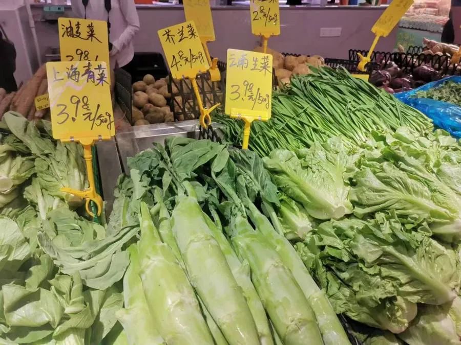 在静华集市的平价专柜和基地直供专柜,青菜、芹菜、鸡毛菜……几十个蔬菜品种一字排开,两个专柜的菜价鲜有品种单价在“两位数”,比市场价普遍要低2-3成。